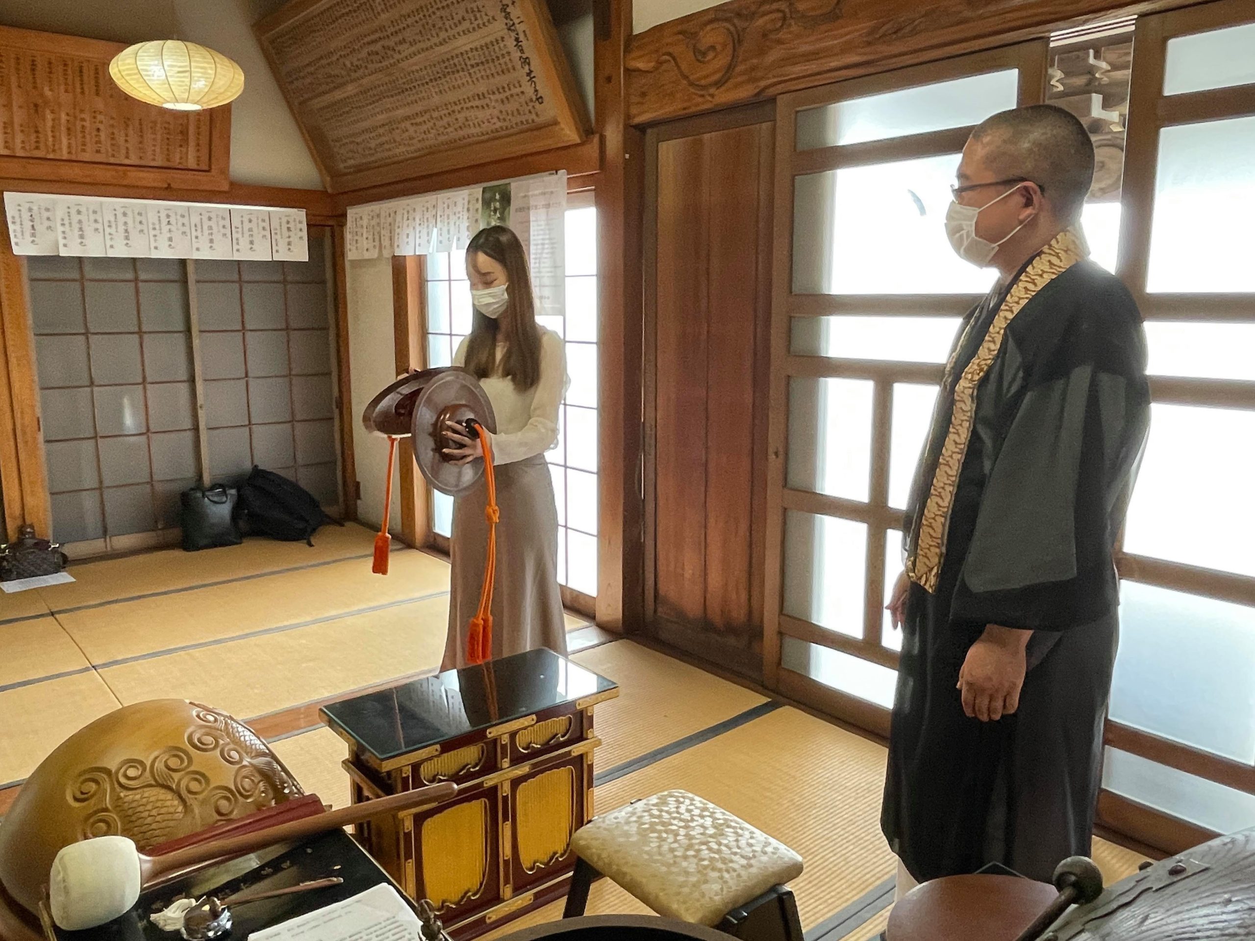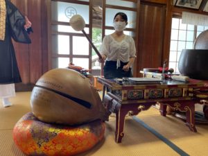 お経の後は木魚や銅鑼といった鳴り物も体験させていただきました!