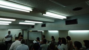 先日、関内駅南口会場に出演していただくゴスペルスクエアの皆さんの練習に参加してきました。渋谷駅前のゴスペルスタジオに拠点を構えています。映画「天使にラブソングを」で有名なゴスペルですが、体全身を使って出されるパワフルな歌声が特徴的です。