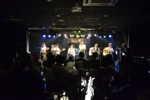 アコギ2本とサックス、ベース、キーボード、