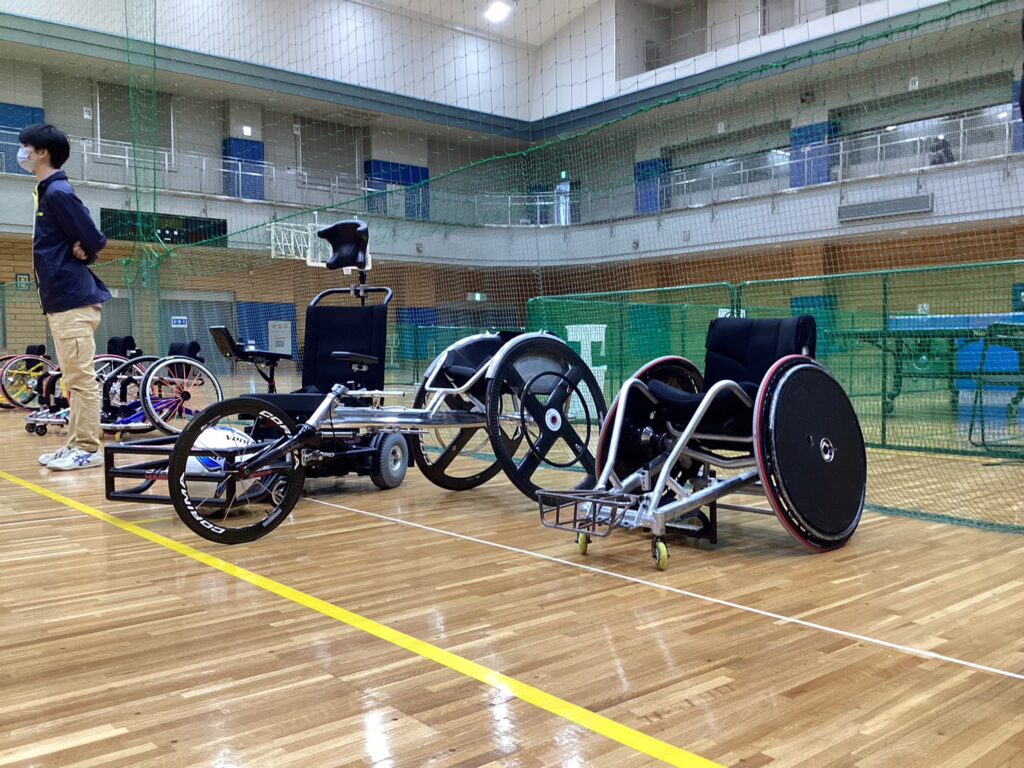 競技用車椅子を使って体験したり、