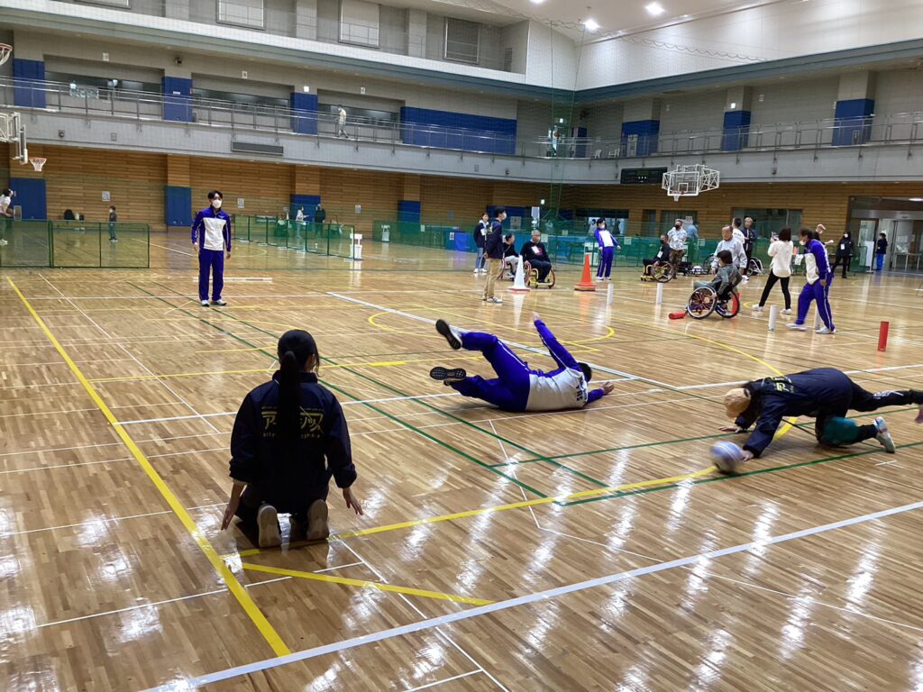 ゴールボールで、ボールを投げたり取ったり…